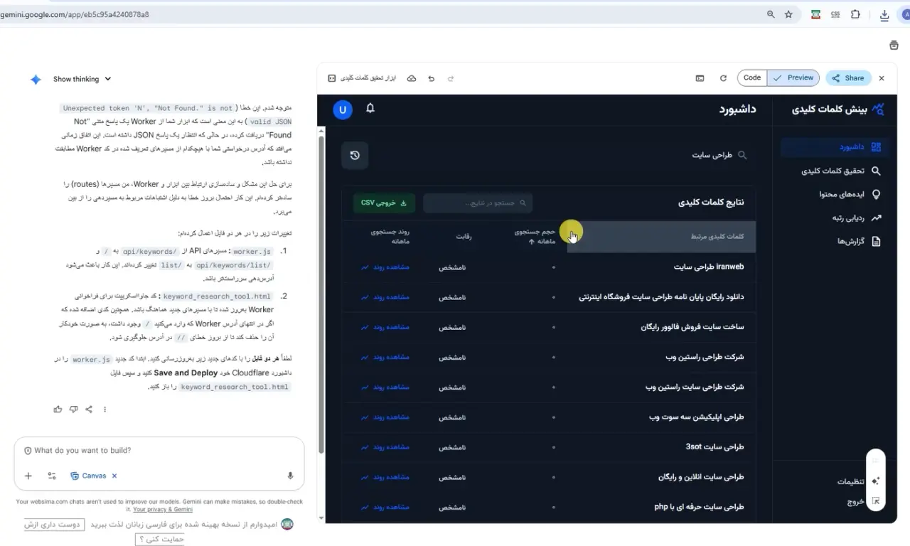 برای تأمین دادههای خام و باکیفیت، از سرویس Rapid API استفاده شد که خروجیهای آن شامل Search Volume و Trend مناسب برای کلمات فارسی است. ما یاد گرفتیم که چگونه کلید API را به صورت امن و به عنوان یک متغیر (Variable) در محیط ورکر تعریف کنیم تا در کد HTML دیده نشود.