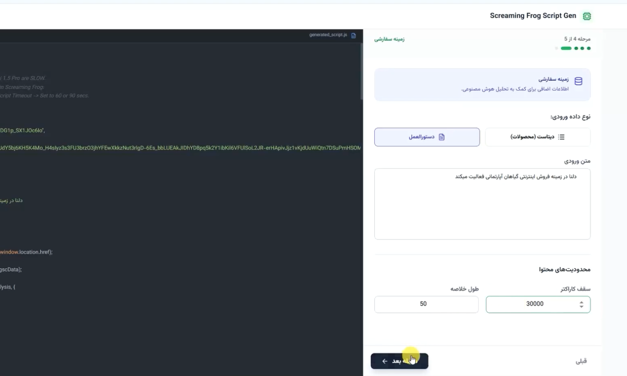 ساخت ابزار Screaming Frog Script Gen