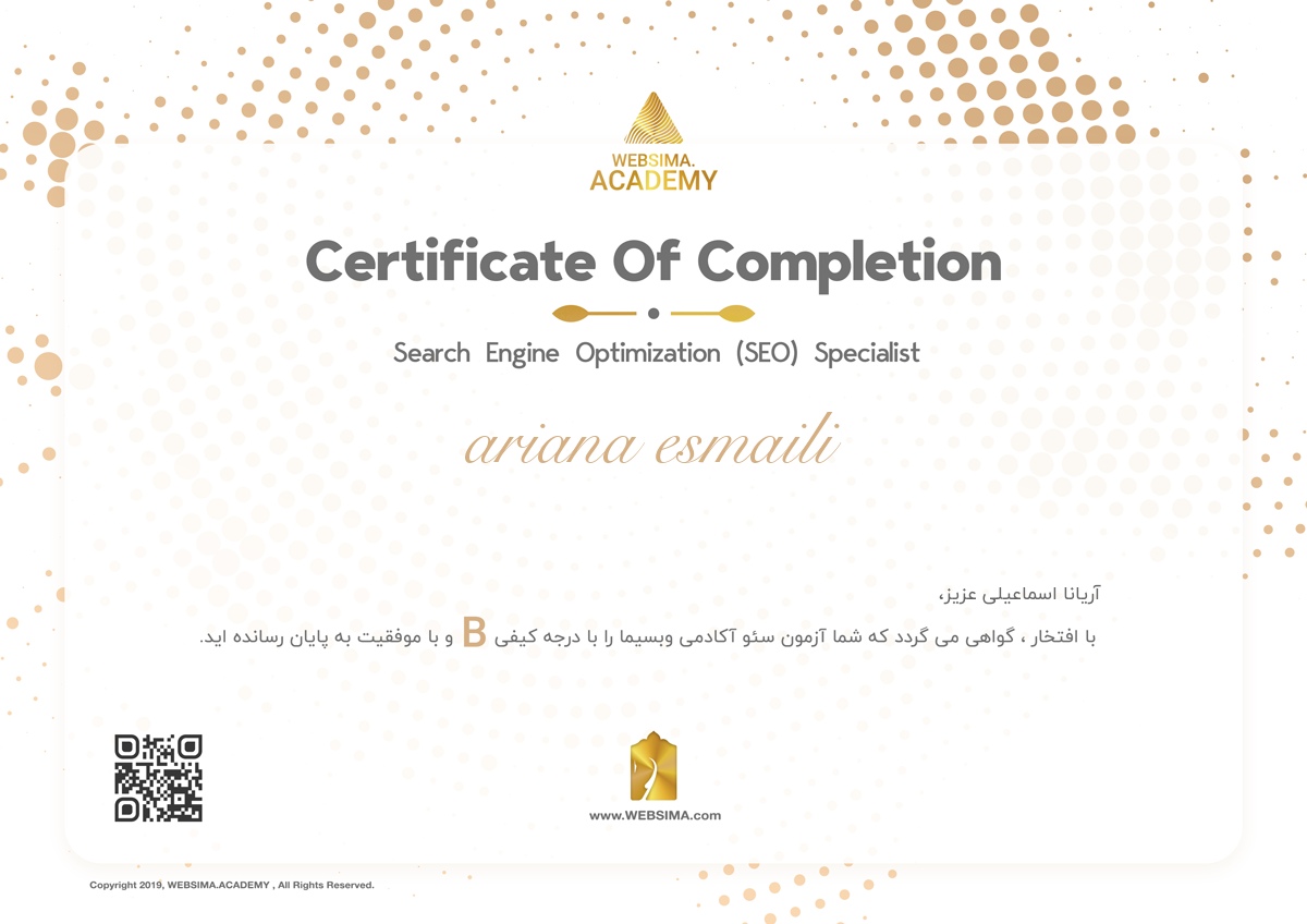 آریانا اسماعیلی، آزمون تخصصی سئو را با درجه کیفی B و با موفقیت به پایان رسانده است.