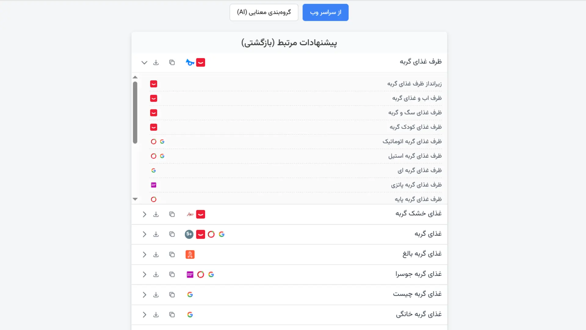 شاهکلید قرار نیست فقط یک لیست ساده از کلمات به شما بدهد. این ابزار با استفاده از هوش مصنوعی و دادههای واقعی از منابع مختلف، پیشنهادهایی دقیق و قابل اعتماد ارائه میکند و حتی آنها را بهصورت معنایی گروهبندی میکند. به این ترتیب، شما بهجای ساعتها جستجو و آزمونوخطا، خیلی سریع به تصویری روشن از نیاز و قصد کاربر میرسید.